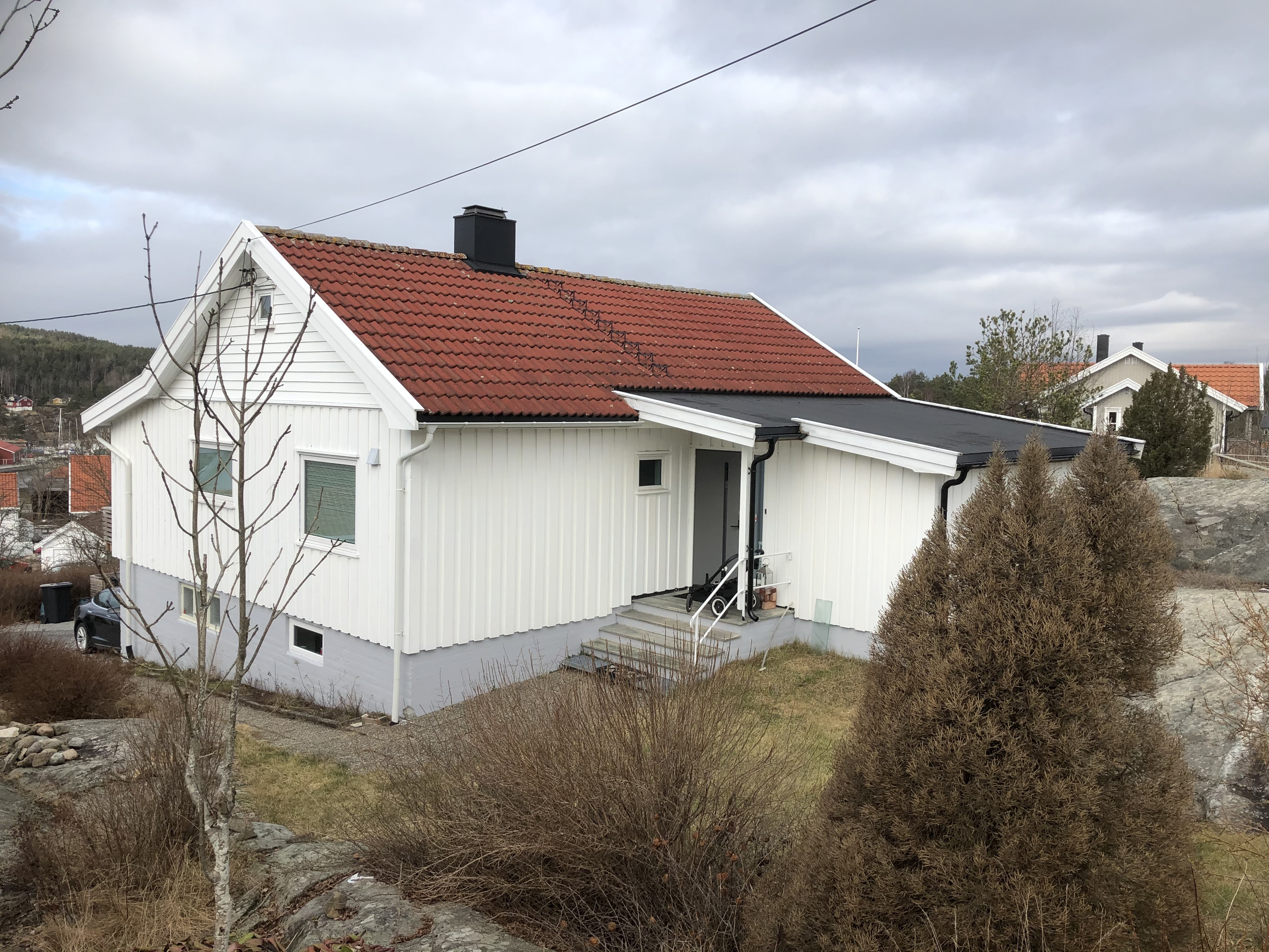 Huset har fått en total ombygging med nye fasader, planløsning og innvendige overflater. Den nye formen samler utbygg og hovedhus i et helhetlig uttrykk. Det er lagt vekt på tilpasning til omkringliggende bebyggelse og bevaring av den flotte naturtomta huset ligger på.