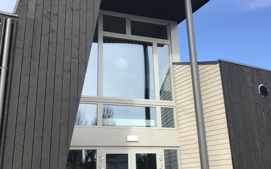 Utfordringen var å tilpasse et relativt stort volum og en ny funksjon til et tradisjonelt gårdstun. Huset er gitt en ny og utfordrende form med spisst avsluttede gavler, men en tradisjonelt oppsluttende saltaksform med en markant takvinkel. Saltak og langvegger har en mørk kledning som minner om låvepanel. Som kontrast til den omsluttende og lukkede rammen, åpner gavlene mot nord og sør seg med store glassflater og balkonger. Det er gitt stor vekt på tradisjonelle materialer med høy kvalitet, men med nye, røffe løsninger. Slik gir dagens formspråk et tilskudd til det tradisjonsrike tunet.