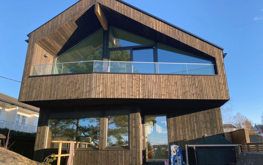 Sætreskogveien har fått nytt påbygg, og er ombygget og modernisert både innvendig og utvendig. Eneboligen får mer utbytte av utsikten mot syd med et nytt påbygg som har gitt bygget en ny etasje og et fornyet og mer dynamisk formuttrykk. Den tidligere garasjen er bruksendret til soverom og bad, og det er oppført ny garasje og carport, løsrevet fra boligen.