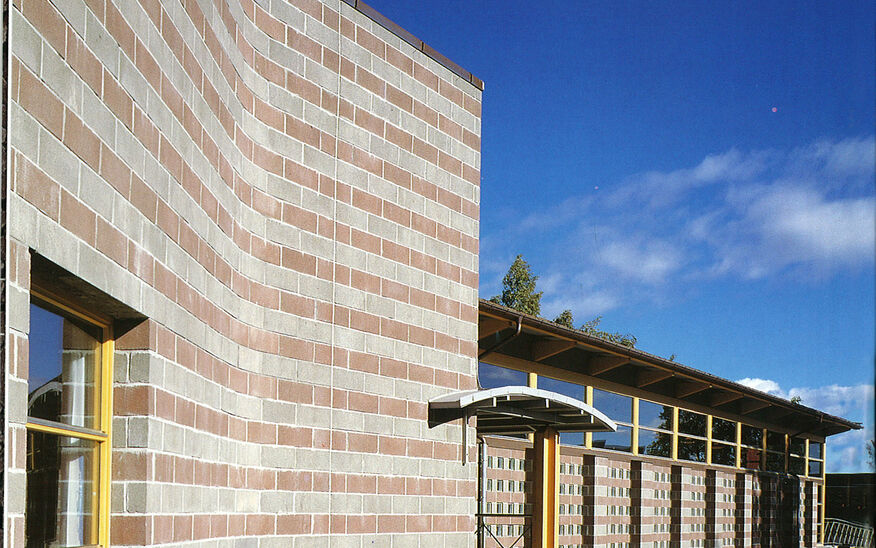 Tilbygget fremstår med egenkarakter i et forsøk på å tilføre et ellers stramt og lineært bygningsanlegg nye kvaliteter med en enhetlig og sterk form. Samtidig er strukturen i 60-tallets elementbyggeri forsøkt videreforedlet ved en rendyrking av et av de minste bygningselementene, lecablokken, både som element, konstruksjon og overflate. Lecafarget blokk ble benyttet for å dyrke kontrasten mellom den vertikale og horrisontale linjen.