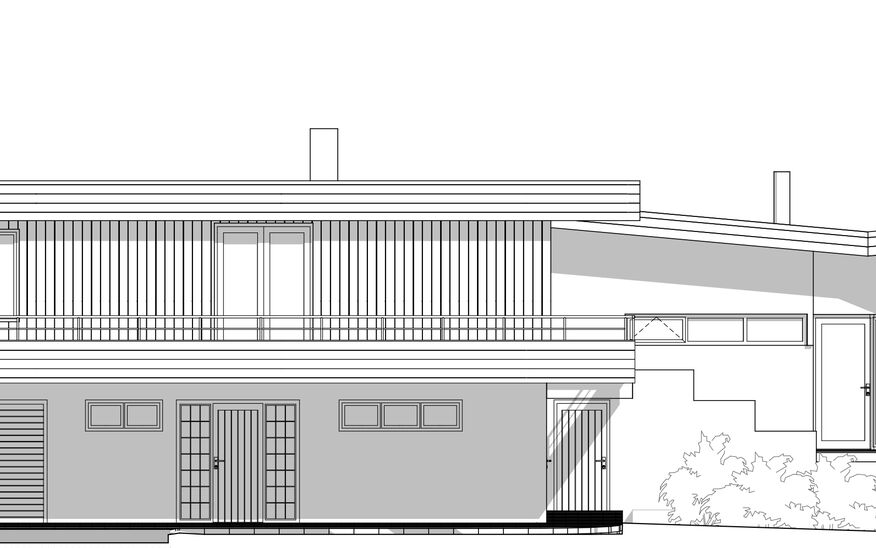 Hovedboligen er et typisk 60-talls trefunkishus med flatt tak og en tydelig horisontal gesimskasse. Tilbygget tar opp disse tydelige linjene, men på en mer dynamisk måte ved å gi det en vinkel som følger terrengretningen, for så å vippe seg opp igjen. Slik er det skapt et uttrykk fra vår tid, samtidig som at det knytter seg til det eksisterende huset uten at det har blitt endret.