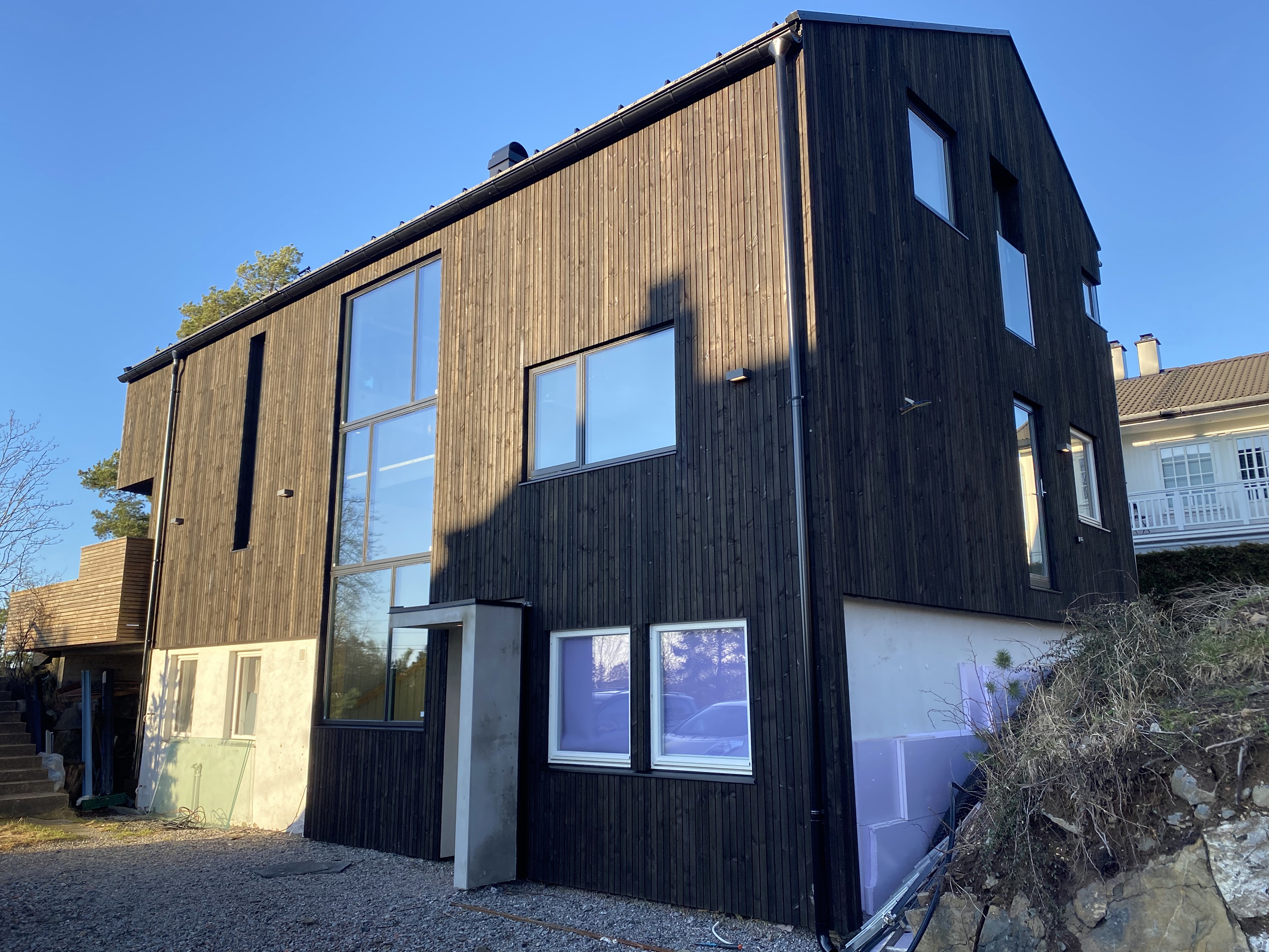 Sætreskogveien har fått nytt påbygg, og er ombygget og modernisert både innvendig og utvendig. Eneboligen får mer utbytte av utsikten mot syd med et nytt påbygg som har gitt bygget en ny etasje og et fornyet og mer dynamisk formuttrykk. Den tidligere garasjen er bruksendret til soverom og bad, og det er oppført ny garasje og carport, løsrevet fra boligen.