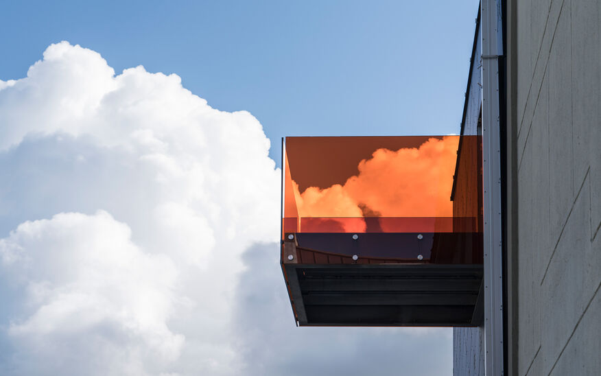 Sidescenen er tydelig i sin form - «den blå boksen», og resten av tilbygget har glassfasade mot gårdsplassen, hvor halvparten av glasset er utført i aerogel med gode isolasjonsegenskaper, samt at det slipper inn og sprer lys.