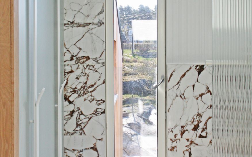 Huset har fått en total ombygging med nye fasader, planløsning og innvendige overflater. Den nye formen samler utbygg og hovedhus i et helhetlig uttrykk. Det er lagt vekt på tilpasning til omkringliggende bebyggelse og bevaring av den flotte naturtomta huset ligger på.