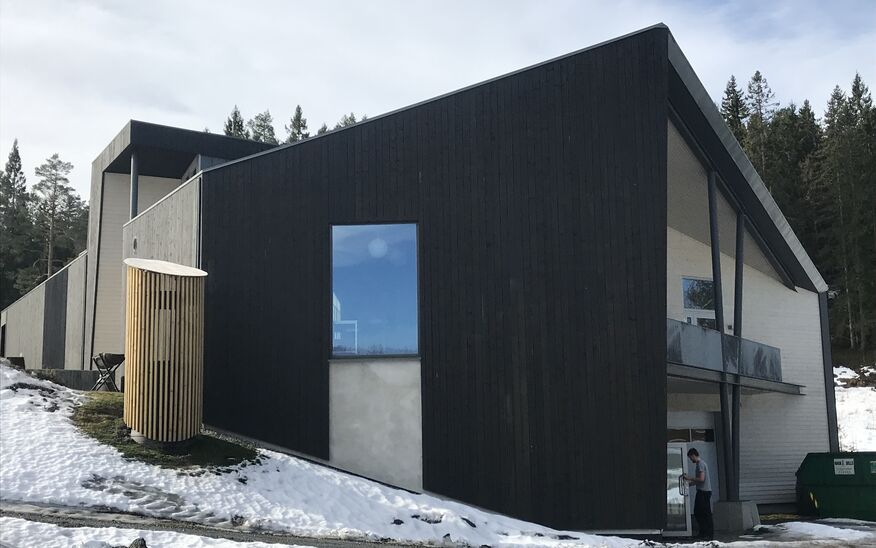 Utfordringen var å tilpasse et relativt stort volum og en ny funksjon til et tradisjonelt gårdstun. Huset er gitt en ny og utfordrende form med spisst avsluttede gavler, men en tradisjonelt oppsluttende saltaksform med en markant takvinkel. Saltak og langvegger har en mørk kledning som minner om låvepanel. Som kontrast til den omsluttende og lukkede rammen, åpner gavlene mot nord og sør seg med store glassflater og balkonger. Det er gitt stor vekt på tradisjonelle materialer med høy kvalitet, men med nye, røffe løsninger. Slik gir dagens formspråk et tilskudd til det tradisjonsrike tunet.