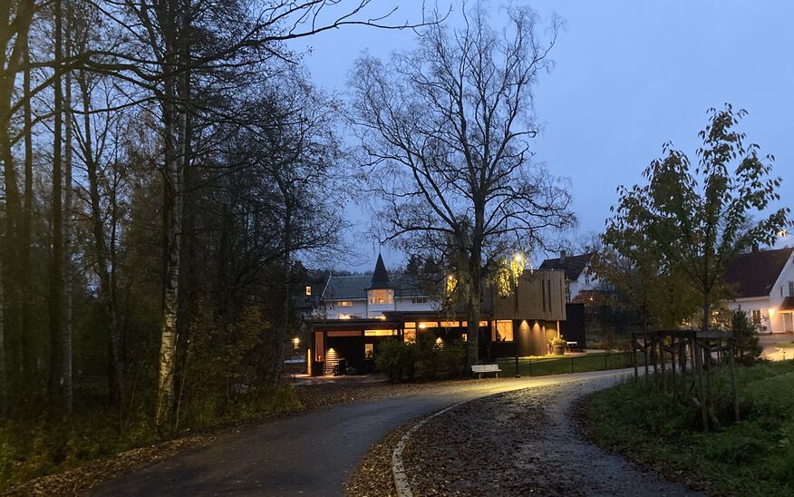Det nye huset er plassert i en vinkel som følger svingen til Theodor Hansens vei. Hovedvolumet ligger i plan med uteområdets rause, tredekkede flater. Den smalere fløyen på tvers lukker den private hagen mot veien, og skaper luft mot det beveraringsverdige huset, Liljevik. Denne fløyen trapper seg nedover, slik at tårnet på Liljevik fremdeles er godt synlig når man nærmer seg boligen.